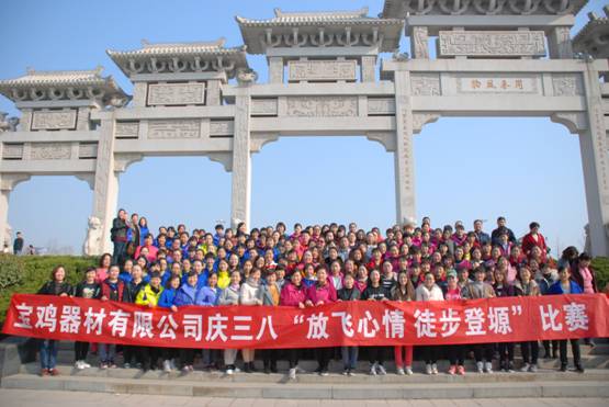 春日的阳光暖暖地照着大地,台阶两旁盛开的迎春花朝着人们微笑。在比赛起点,女工委主任对本次活动进行了整体安排并向女工们致以节日的问候。紧接着一声响亮的发令枪响过,从行政中心涵洞口到蟠龙文化公园的徒步登塬比赛开始了,大家在欢声笑语中,沐浴着阳光,呼吸着清新的空气,一路攀登而上,由于台阶多路线较长有些女工体力跟不上,大家互相照顾,结伴而行。登顶以后豁然开朗,放眼望去宝鸡美景尽在眼前,“一览众山小”的酣畅顿时拂去了爬山的劳顿。